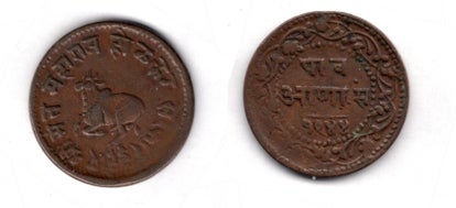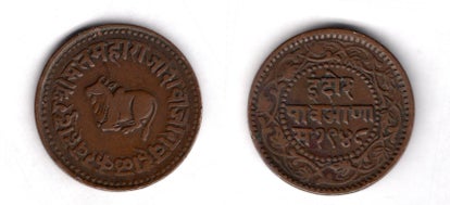 Indore. 1/2 Anna 1880s-90s. 32mm. dy21944