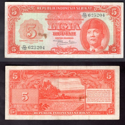Indonesia. Five Rupiah (1958) BBL 006929 Crisp VF. DY20362