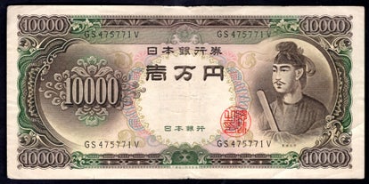 Japan, 10,000 Yen (1958) (WPM 94b). GS475771V. GVF+.