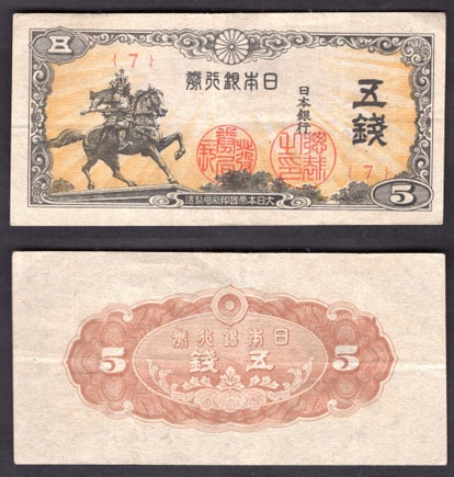 Japan. 5 Yen Occupation of China F-VF dy23313