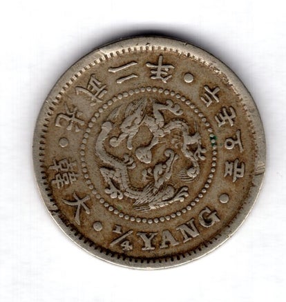Korea, 1/4 Yang 1898. Rim damage. DY17957