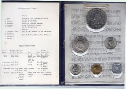 Philippines. Six Coin Set 1975 in "passport" folder. dy23855