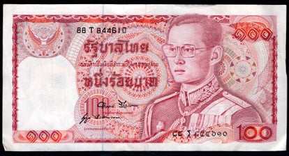 Thailand. 100 Baht 1970s, 88T844610. NVF.
