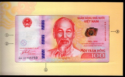 Vietnam. 100 Dong, 65th Anniversary Banking. 2016.