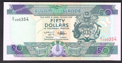 Solomon Islands, $50 (1997) First series, very low number C/1 000663. UNC.