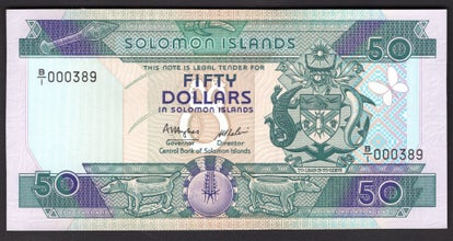 Solomon Islands, $50 (1986) First series, very low number B/1 000389.