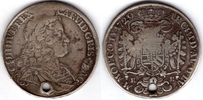 Austria. Charles VI Silver Kreuzer denom 1729. Holed. Dia; C.4cm.