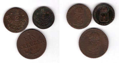 Austria. 1/4, 1/2 & 1 Kreuzer all 1816A . dy16343.