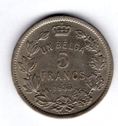 Belgium. 5 Francs (French) 1933.