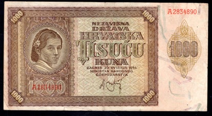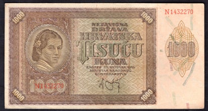 Croatia. 1,000 Kuna 1941 Crisp VF. DY19393