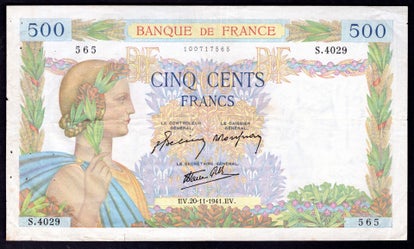 France. 500 Francs 20-11-1941 100717565 (WPM 95b)