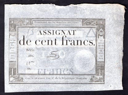 France. 100 Francs 1795 series 494. NEF. dy20997