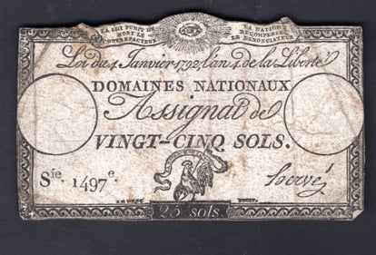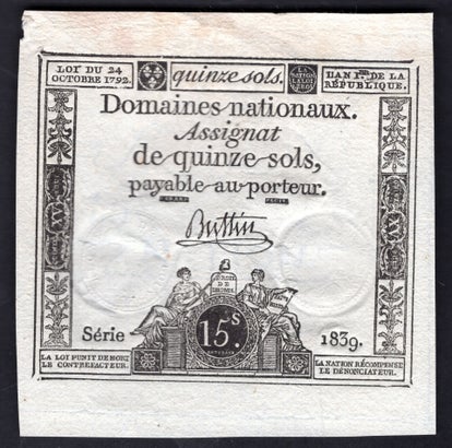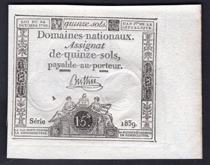 15 Sols 24-10-1792 wmk "Nation" WPM A69a, slight denting DY20963 AU+. £25