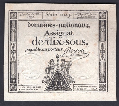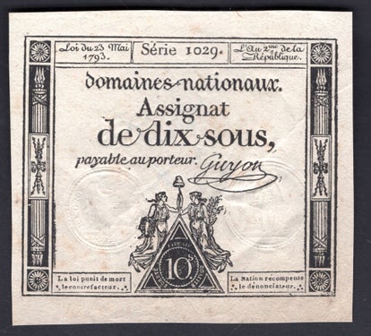 10 Sous 23-5-1793, light staining, pinhole, GVF. WMK; RF DY20968 £15