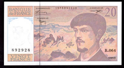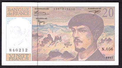 France. 20 Francs 1997, last date and last alphabet. B.064 EF. DY20316