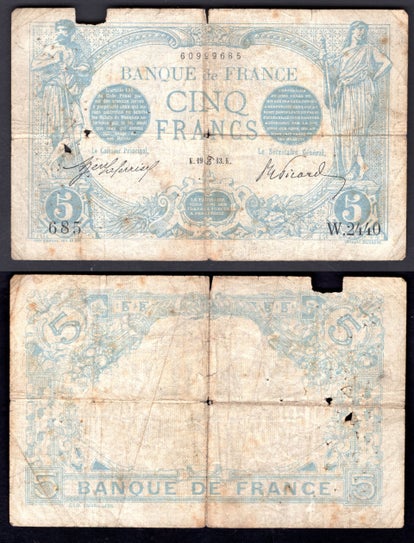 France. Five Francs Aug 1915 188313135 (WPM 70).