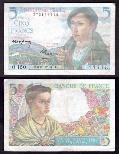 France. 5 Francs 30-10-1947 Last Date Crisp F-VF. DY22071