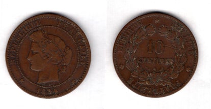 France. 10 Centimes 1872A.