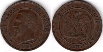 France. 10 Centime 1854A. dy22726