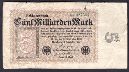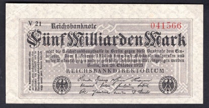 Germany. Five Milliarden Mark 20-10-1923 (WPM 123a).