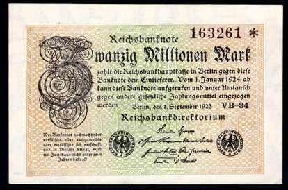 Germany. 20 Million Mark 1-9-1923. No 163261, GEF.