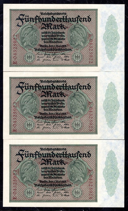 Germany. 3 x 500,000 mark consecutive, 1923.