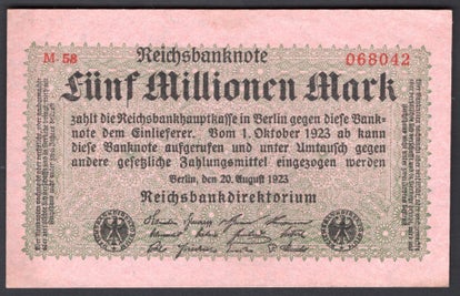 Germany. 5 Million Mark 20-8-1923. 068042 (WPM 105).