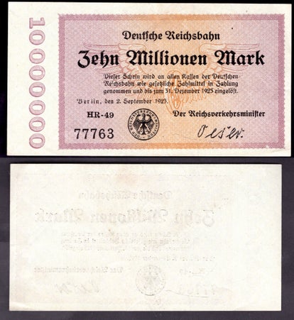 Germany. Reichsbahn. Berlin. 10 Million Mark 2-9-1923. 398690
