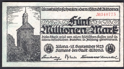 Altona. 5 Million Mark 1923 Crisp GVF. dy20281