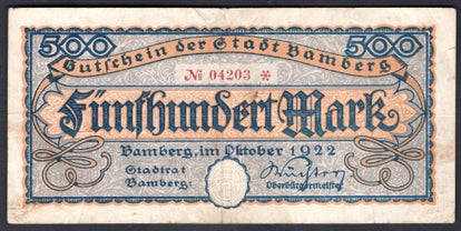 Germany. Bamberg. 500 Mark October 1922 04203 VF. DY20516