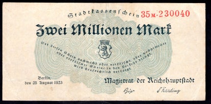 Germany. Berlin. Two Million Mark 25-8-1923 35M.230040