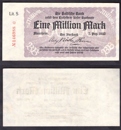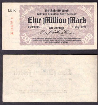 Badische Bank. One Million Mark 1923 EF. dy22507
