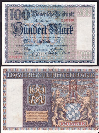 Bayerische Bank. 100 Mark 1922 Crisp VF. dy22538