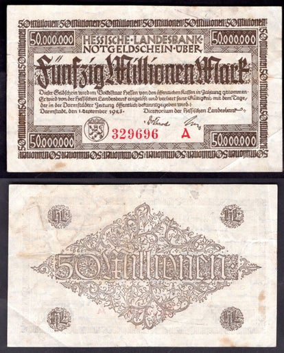 Hessische Landesbank. 50 Million Mark 1923 Crisp F-VF. dy22510