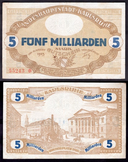 Karlsruhe. Five Milliarden Mark 1923