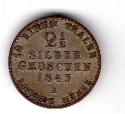 Prussia, 2.5 Silber Groschen, 1843A. DY18926