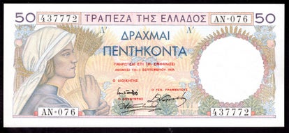 Greece. 50 Drachma 1935 (WPM 104) 437772. VF-EF. DY20129