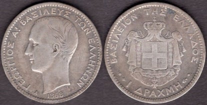 Greece. One Drachma 1868. dy21767