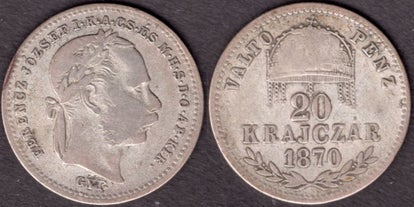 Hungary. 20 Krajczar 1870 Karlsburg. dy21250