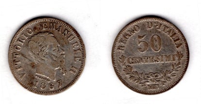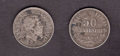 Italy. 50 Centesimi 1867N. dy22258
