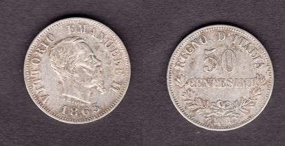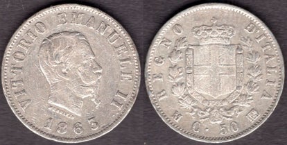 Italy. 50 Centesimi 1863M.