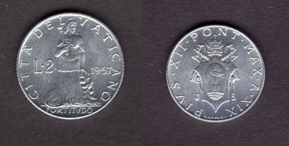 Vatican. Two, Five & Ten Lire 1952. dy21516