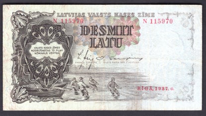 Latvia, State Treasury Note, 10 latu, 1937, N 115970 (WPM 29a).