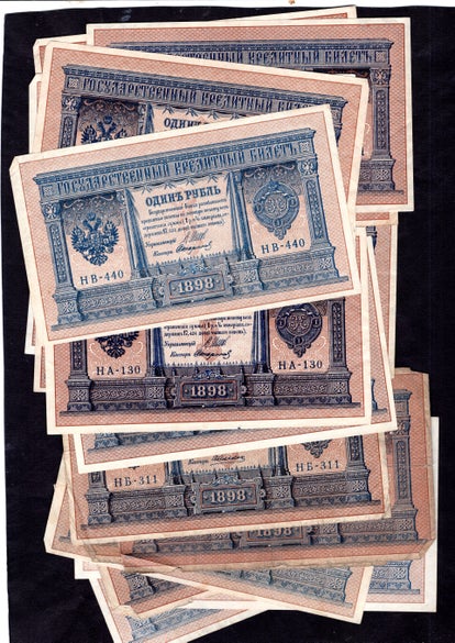 1,000 Roubles, a couple of pinholes. Crisp F-VF.