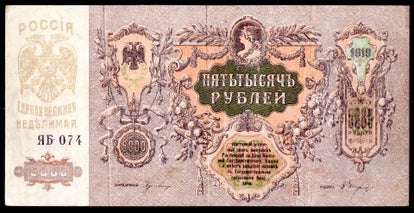 1,000 Roubles, a few minor edge nicks, 2 pinholes, pressed F-VF.