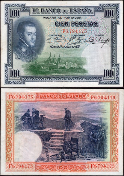Spain, 100 Pesetas, 15-8-1928 (WPM 76a). 4,532,577.
