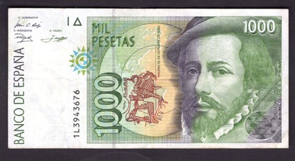 Spain. 1,000 Pesetas 1992, 1L3943676. F-VF.