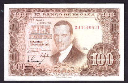 Spain. 100 Pesetas 1953 2J4440831 Crisp VF. DY19226