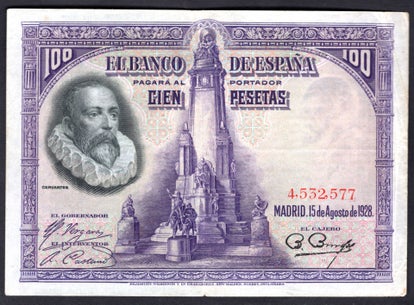 Spain, 100 Pesetas, 15-8-1928 (WPM 76a). 4,532,577.