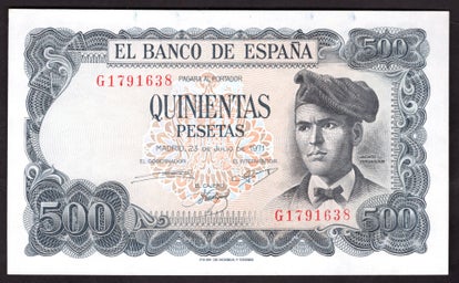 Spain. El Banco De Espana. 500 pesetas. 23-7-1971. Series G. (Pick 153a).